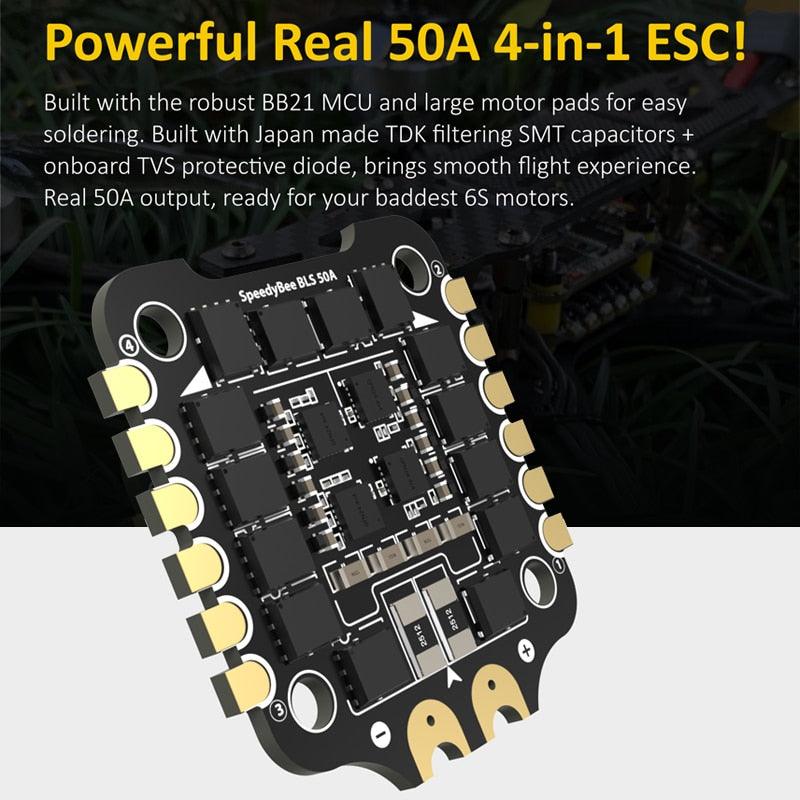 Built with robust BB21 MCU and large motor pads for easy soldering, brings smooth flight experience: Real 50A output, ready for your baddest 6S motors