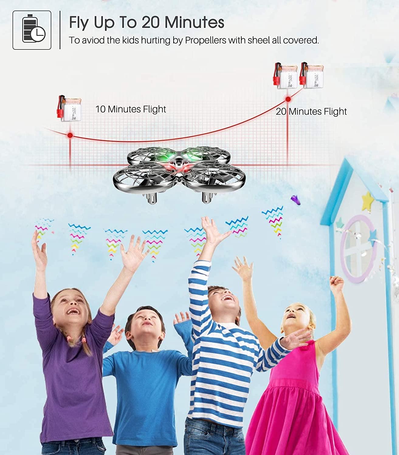 - [Durable Drone]–The drone with child-friendly flying toys features covered by shell, no hurting by propellers shedding or propellers during flight for increased durability.