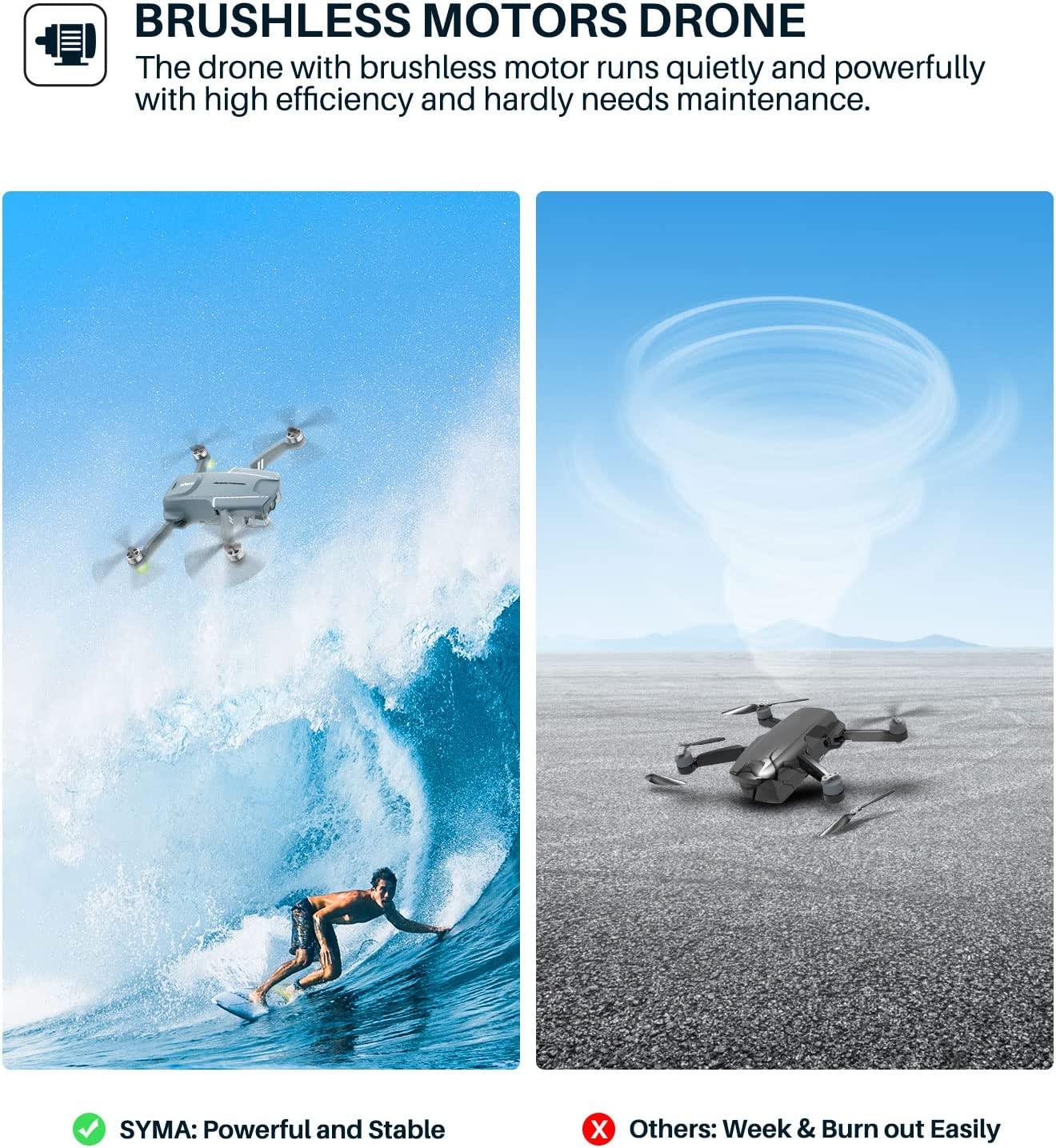 - Brushless Motors with Level 7 Wind Resistance: Brushless motors run more powerful with much less noise compared to brushed motors, which the drone performs a very stable flight while in the air, along with the powerful but low noise brushless motor enable stable and fast drone flights.