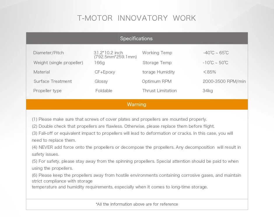 T-motor FA31.2×10.2 Propeller SPECIFICATIONS