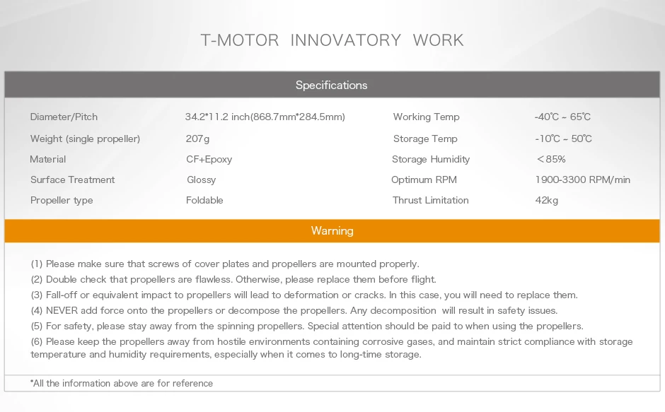 T-motor FA34.2*11.2 Foldable Propeller SPECIFICATIONS