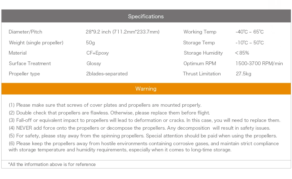 T-motor G28*9.2″ Carbon Fiber 4-blades PROPS SPECIFICATIONS