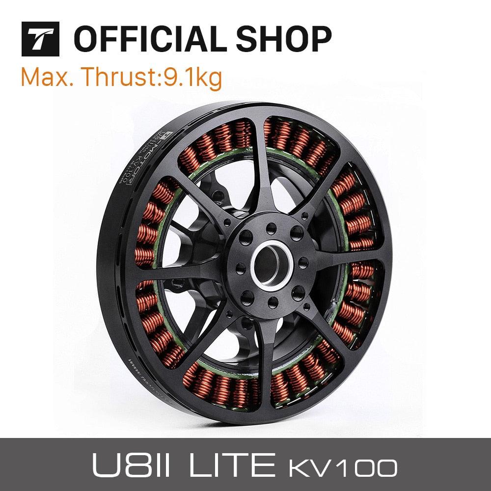 The T-motor U8II Lite KV100 brushless motor features an ultra-light design for extended flight times and includes netting for added protection.