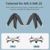 Product Specifications: Compatible Models – DJI Mavic Air 2/Air 2S; Main Material – Three-Blade Propeller; Dimensions: Product Size – Approximately 28.1g/30.8g (includes two pairs).
