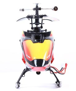 The main features of this RC helicopter include a balance bar, fail-safe blade design, metal frame, power cord, landing skid, and vertical canopy. Additionally, it has a tail motor and comes with battery charging capabilities.