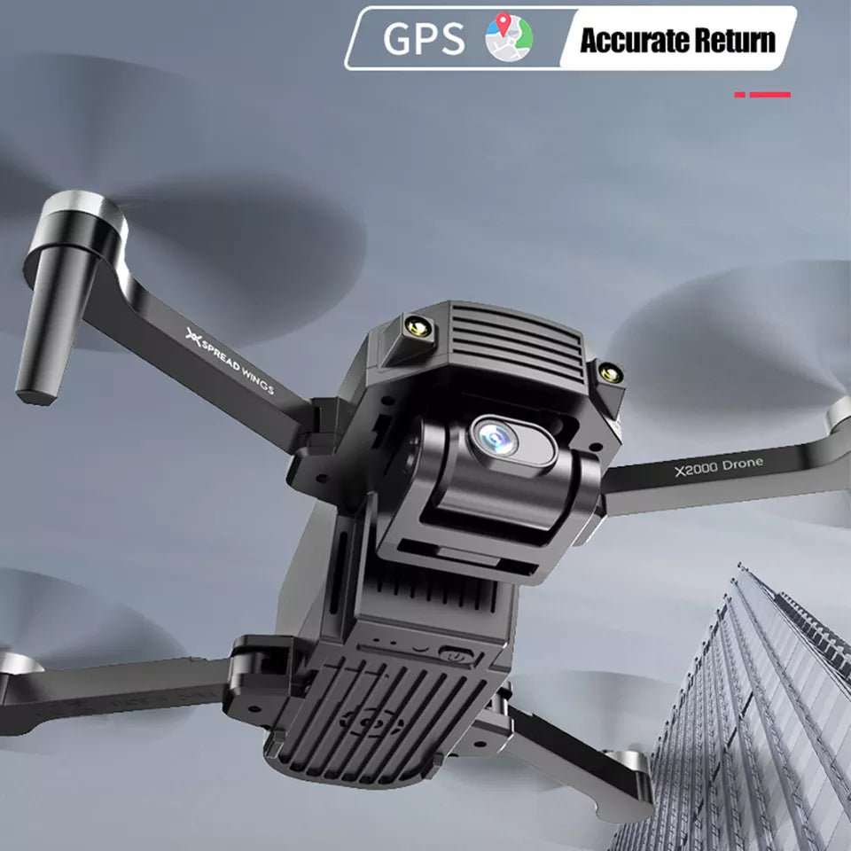 Object: X2000 Drone – Equipped with 5G Wi-Fi, 4K Ultra HD camera, customized brushless motor, and transmission path flight distance up to 1.3km. Features GPS technology with a range of 300 meters, ultra-wide-angle transmission, and auto-return function for safe and easy flight.