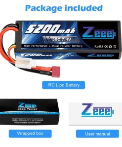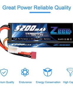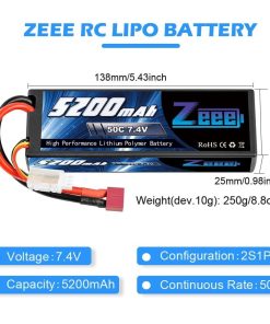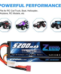 Zeee 5200mAh 7.4V 2S 50C Lipo Battery specially designed for professional 1/10 scale and 1/8 scale RC car hobby models such as: Emaxx, Bandit, Rustler version, Losi, Team Associated, etc.