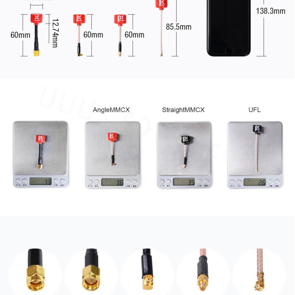 Made with high-quality imported PC+ABS material, this Foxeer Lollipop antenna weighs just 7.3g in its bent state (MMCX: 3.6g / Straight: 3.5g) or 6mm in its straight UFL configuration. Additionally, it boasts a VSWR of 1.2 at the center frequency.