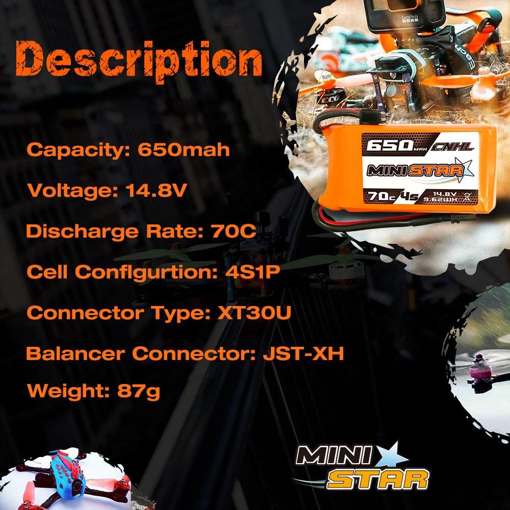 3PCS CNHL Lipo 4S 14.8V 650mAh Battery 70C MiniStar With XT30U Plug For Mini Quad RC FPV Airplane Quadcopter Drone Hobby Part