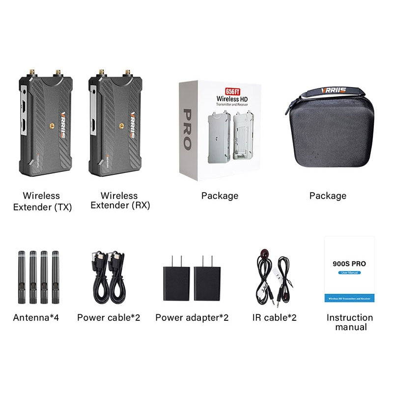 This wireless video transmitter and receiver kit supports high-definition (1080P) transmission up to 200m, making it compatible with various HDMI devices such as TVs, monitors, projectors, cameras, set-top boxes, Blu-ray players, CD/DVD players, PCs, notebooks, VCRs, and more. The kit is designed for barrier-free transmission and features a screw-based connection system (1/4 inch screw).