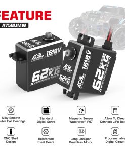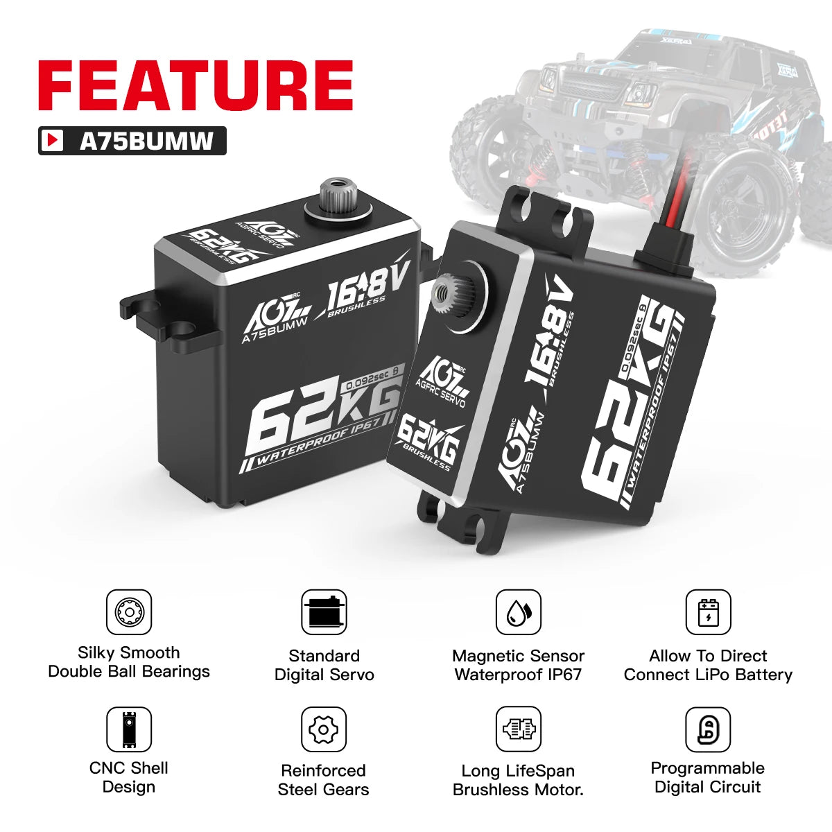 AGFRC Super Torque A75BUMW 4S 62KG Programmable Waterproof Brushless Digital RC Servo for 1/8 1/10 Scale Car Crawler Buggy Truck Monster Truck Racing Boat Helicopter On Road Off Road Large Size Airplane
