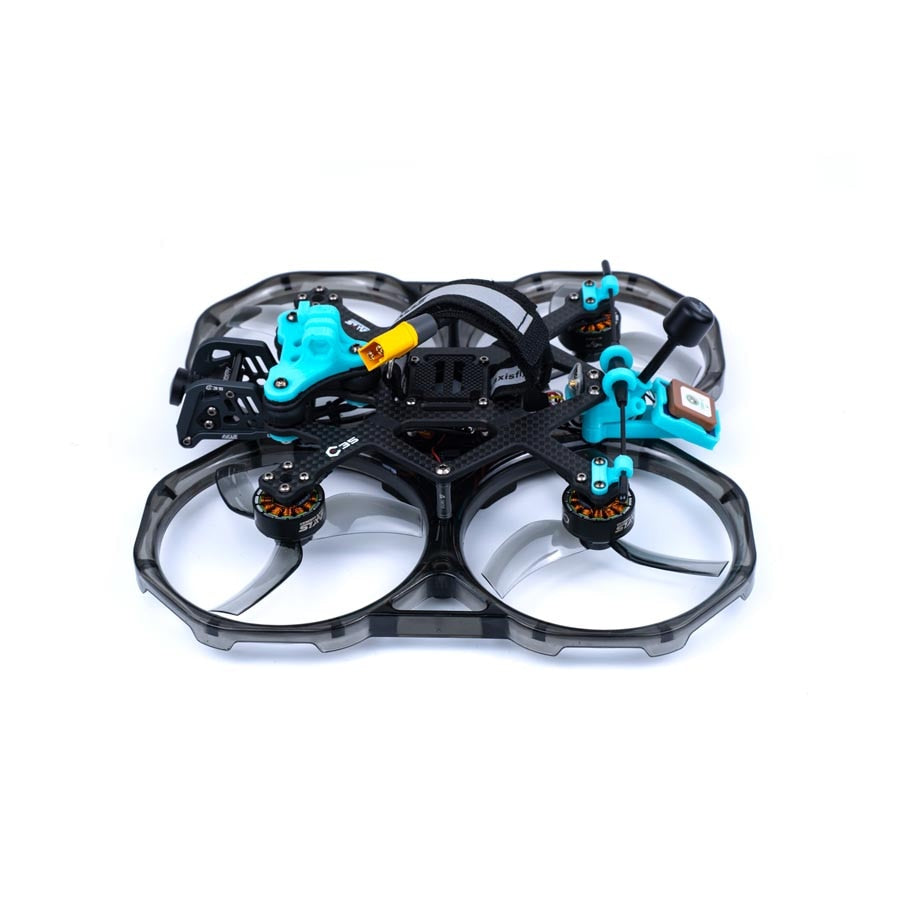 – CINEON series are born for cinematic. C35 cinewhoop drone designes for cinematic indoor and outside shooting. Axisflying researched cinewhoop marketing and discussed with some pilots. We spent some months to develop different guard’s structure and release innovation quick-release guard finally.