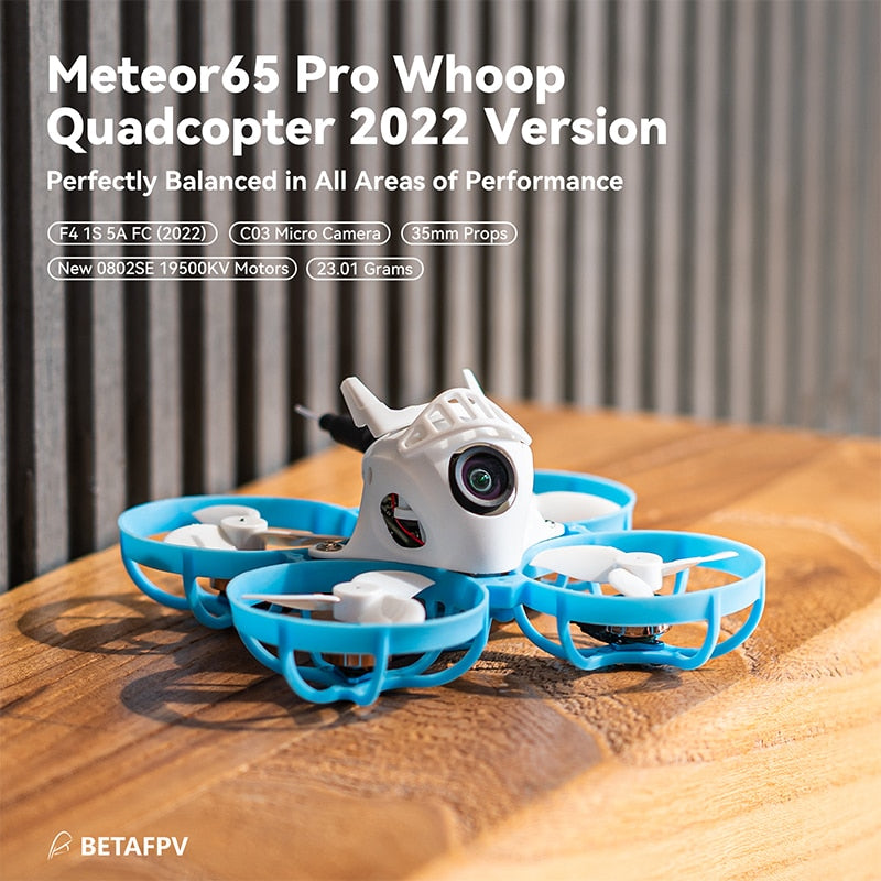 BETAFPV upgraded all Meteor Series quadcopters like Meteor65, Meteor65 Pro, Meteor 75, and Meteor85 whoop quadcopters, through the new flight controller, motors, camera, frame, canopy, etc, to provide the best whoop quadcopters for pilots.