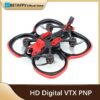 Pavo25 Whoop Quadcopter HD Digital version equips with Caddx Nebula Pro Nano Vista Kit that perfectly supports DJI goggles. With DJI goggles, it can provide 720p/120FPS digital high-definition picture and a transmission output range up to 4km. Users can select 25mW/200mW/500mW/700mW from DJI goggle settings. The total weight (excluding the antenna) is 23g only. Besides, it is smaller and designed for whoop drones.
