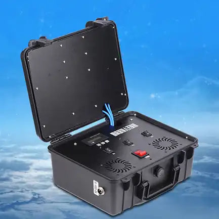 The box-type drone drive-off device is adrone interception device independently developed by our company. This device has interference to the frequency band in use by the drone, and interferes with the signal transmission of the uplink and downlink frequency bands, causing the remote control to fail and shooting The image and video cannot be transmitted back, forcing the drone to hover and land in the air, completely cutting off the connection between the drone and the remote control or ground station, especially suitable for prisons, detention centers, drug rehabilitation centers, security agencies, and military use.