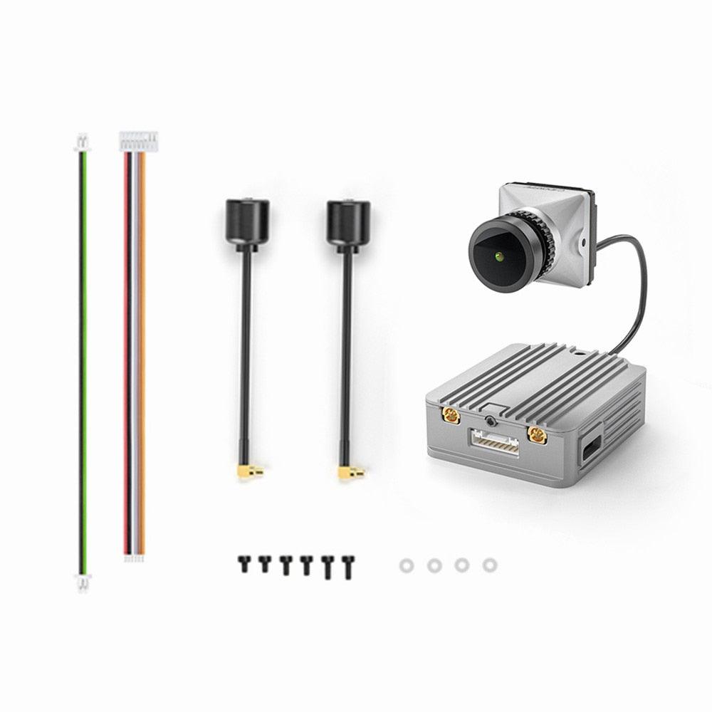 CADDX Polar Air Unit Kit includes an HD digital starlight camera with a 1/1.8-inch sensor, 32ms latency, and a range of 4km. It features a resolution of 720p at 60fps, with a minimum illumination of 0.003 Lux per individual pixel size of 5.5μm. The Polar camera also has a custom F1.8 aperture.