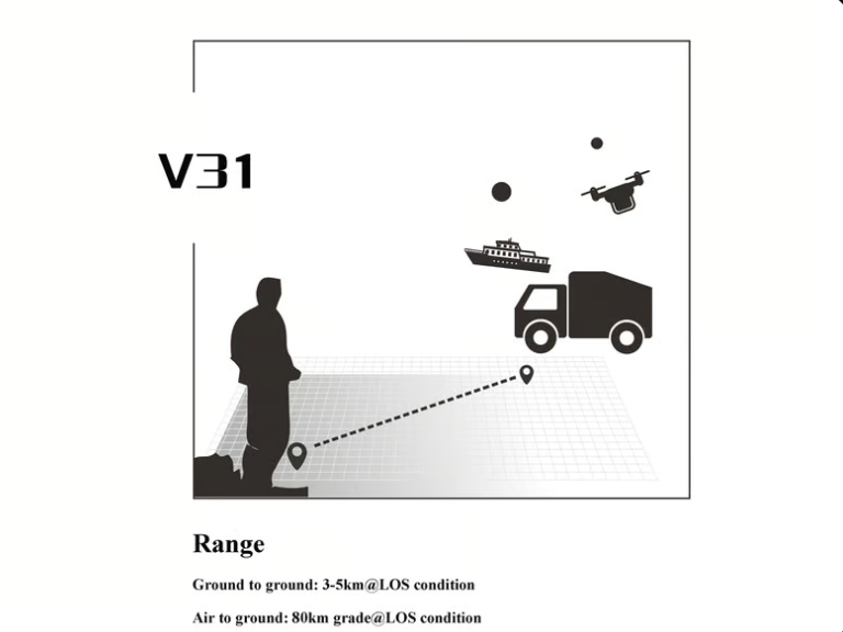 Одной из отличительных особенностей V31 является впечатляющий максимальный радиус действия в 80 км, позволяющий осуществлять дальнюю связь в сложных условиях.