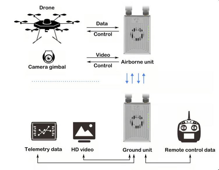 V31 - это исключительная двунаправленная радиочастотная линия связи, которая объединяет видео, телеметрические данные и радиочастотные каналы в единое интегрированное решение. Специально разработанная для удовлетворения потребностей профессиональных промышленных пользователей в таких приложениях, как БПЛА и UGV.