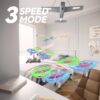 • Mini Drone with Vibrant Colors Light: The LED strip design guarantees operating D23 with ultra bright neon-colored LEDs no matter day or night, indoors or outdoors. 5 different light modes can surely help pilot light up the night.