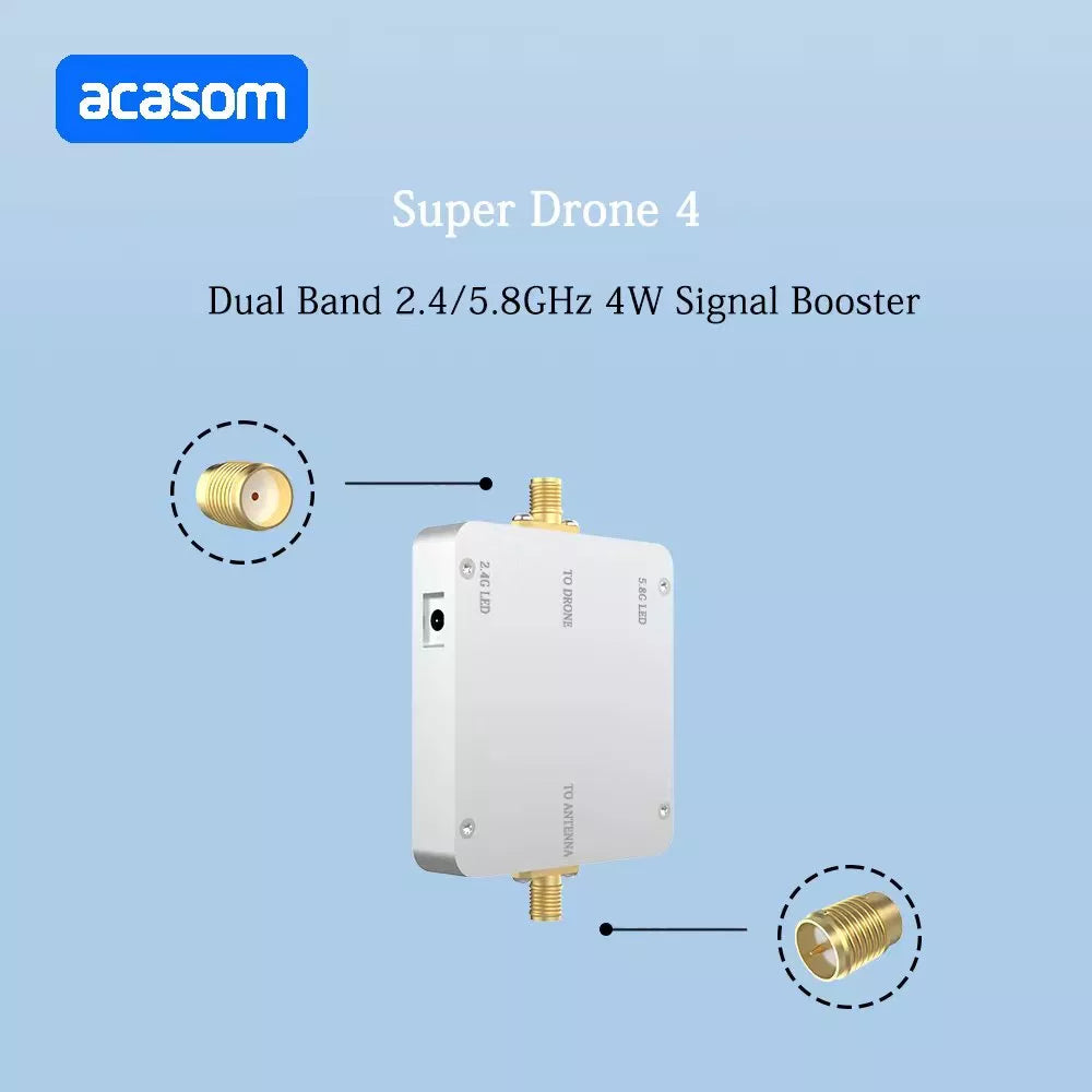 acasom Super Drone 4 Dual Band 2.4/5.8GHz 4W ‘Signal Booster’ 5,8G LED TO DRONE TO ANTENNA 2,.4G LED to DRone to antenna 2 and 4G LED .