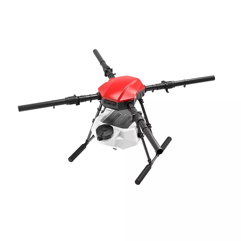 The E416P Series agriculture drones continues the classic design elements of the old E series. It adopts red and blue color matching, a streamlined body design, and the whole body is waterproof, without fear of high pressure washing. The new P series upgrade product adopts a new integrated molding process. Complex to simple, the fuselage is integrated from dozens of original parts into a whole, and the fuselage is made of high-strength and impact-resistant materials, which are strong and anti-fall.