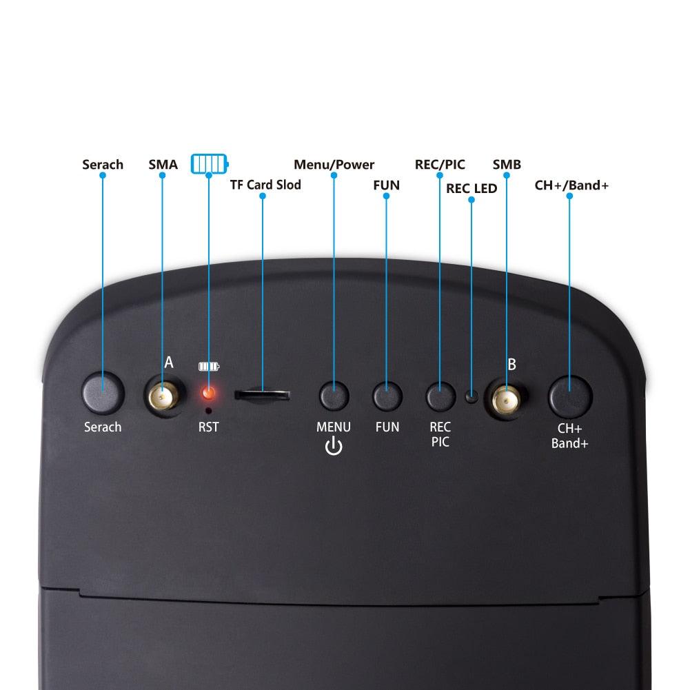 Search: SMA Menu / Power, Record / Play, SD Card Slot. Function Recording, LED Channel + Band. Search Reset Menu, Function Recording, Channel + Picture Band.