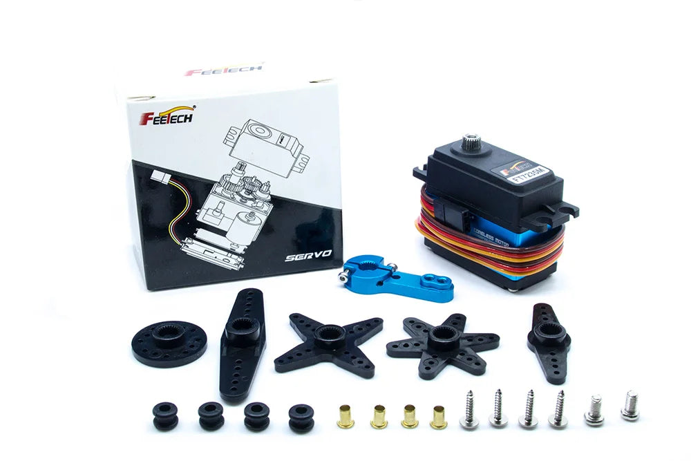 Electronic control Function: 1.Acceleration start stop function: speed and acceleration value can be set, motion effect is more gentle. 2.High precision, 360 degree absolute position 4096 bit precision, the highest position resolution is 0.088 degrees, if the control is 90 degrees, input 4096 / 360 * 90 = 1024, if the control is 180 degrees, input 4096 / 360 * 180 = 2048, so as to calculate. 3.There are four working mode switching (mode 0 position servo, mode 1 speed closed-loop, mode 2 speed open-loop, mode 3 step servo). 1)、Mode 0:Location mode, the default mode. In this mode, 360 degree absolute angle control can be realized. Support acceleration movement. 4、Multi turn mode, 360 degree absolute control and feedback, under the highest accuracy, the absolute position control can be plus or minus 7 turns, but the number of power cycles is not saved, only the absolute position feedback value is retained. 5、One key calibration, 360 degree angle installation at any position, (40 (decimal) address input 128 (decimal)) one key correction current position is the middle (2048 (decimal)). 6、TTL communication level, half duplex asynchronous communication, bus protocol support to adjust read and write parameters, and add synchronous read function (send an instruction to receive the read back instruction from each servo on the bus in turn.) 7、Multiple protections, (overload, overcurrent, overvoltage, overheating, switch setting, condition parameter changing) 1)、Overload protection: through position detection, during the movement from the starting position to the target position, when the current position is detected to be not the target position after encountering the blocking of obstacles, the unloading force lasts for 2S (20% of the default blocking force). Until a new command is triggered, Release protection 8:Multiple feedback: 1)Load feedback: the current control output drives the voltage duty cycle of the motor, and the full scale is 1000 = 100% torque output. 9、Open PID parameters. |