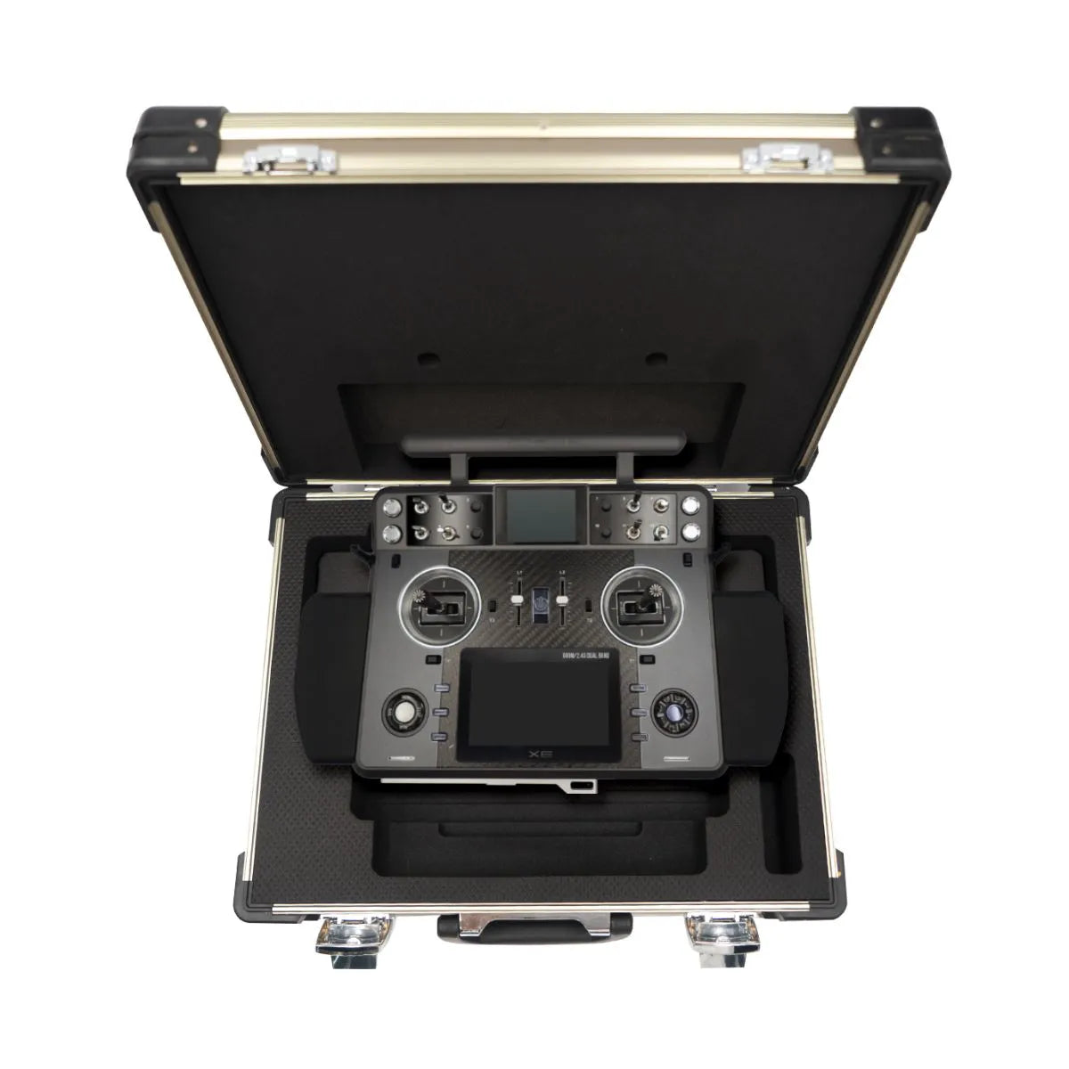 TANDEM XE has been designed with flexibility in mind. It not only features multiple switch input slots for further extending the control needs, it also benefits from customisable switch blocks which can also be replaced with alternative blocks with more input slots. Additional design features have been included to meet the needs of wider RC user communities, for example controlling the forward and reverse movement of RC crawlers can be achieved by customizing the side All CNC metal levers with the optional self-centering type accessory. Likewise using the optional 3-axis extenders mounted on the gimbals offers many possibilities when used with RC ground vehicles. The XE includes a foldable stand/frame which can be easily folded away in the bottom of the radio body, and its design also provides a good solution to attach the tray radio strap.