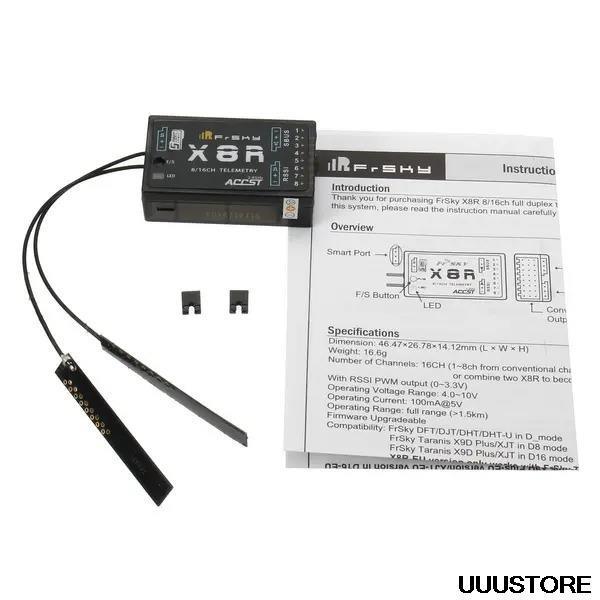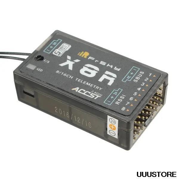 Number of Channels: 16CH (1~8ch from conventional channel outputs, 1~16ch from SBUS port,or combine two X8R to become a 16 channels receiver)