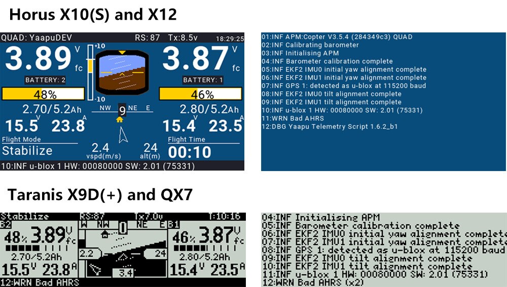 Taranis X9D(+) and QX7 B2abinz JBl BE 8#NE (oiticlicinz-AEE ation 48. 3.898 d6. 2.4 24 00:10 vspd(m/s) alt(un)