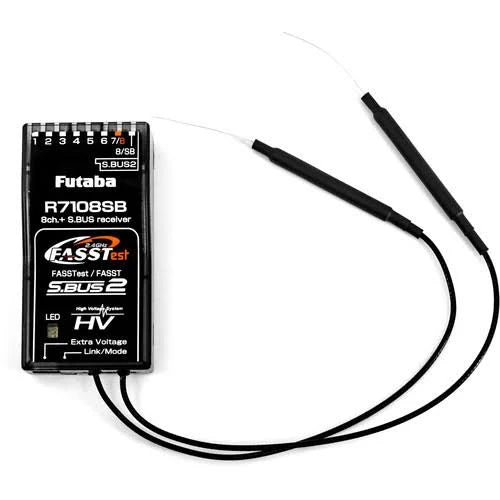 The Futaba 32MZ transmitter system comes with the R7108SB S.Bus2 Dual Antenna Diversity receiver featuring bi-directional communication.
