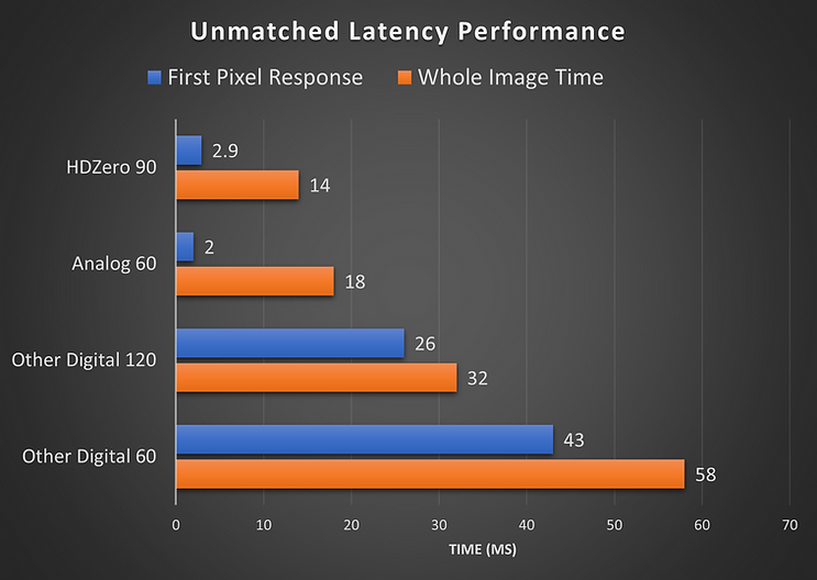 Nano 90 is able to reach to 3ms pixel latency and 14ms frame latency glass to glass with the HDZero goggle.