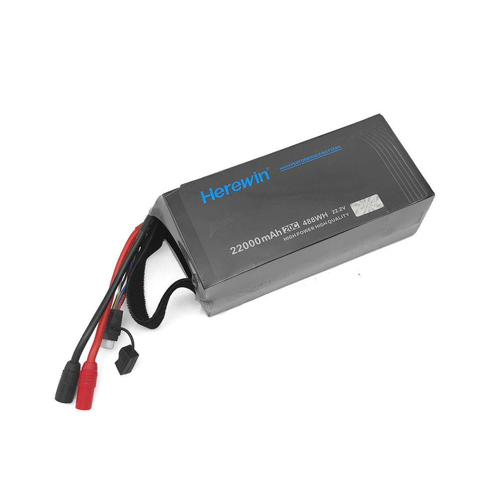 Высокопроизводительный литий-ионный полимерный аккумулятор Herewin емкостью 22000 мАч, обеспечивающий высокую скорость разряда до 20C и напряжение 22,2 В, обеспечивает превосходное качество и производительность.