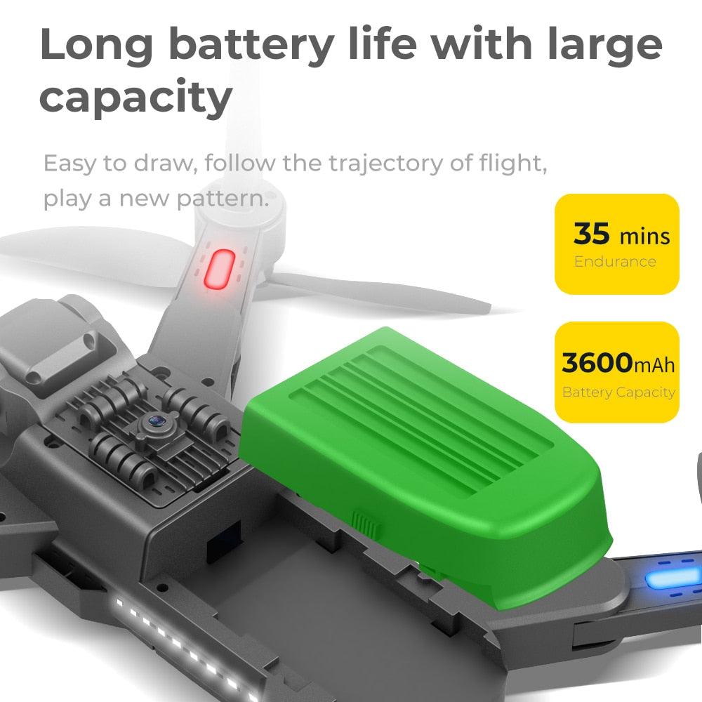 Features long battery life with a large 3600mAh battery capacity, allowing for up to 35 minutes of endurance in a single flight. Easy to draw and follow flight trajectories, enabling new patterns and maneuvers.