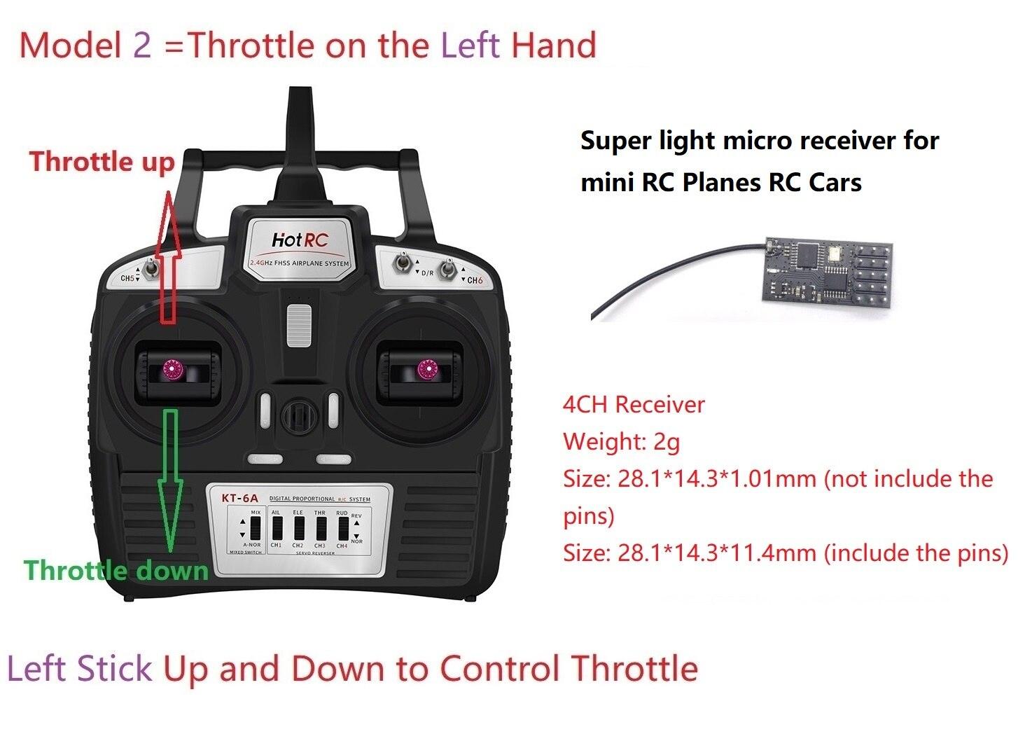 Radio Control HotRC KT-6A 2.4Ghz 6ch 4ch Channel with Super Light Receiver for Mini RC Planes RC Cars