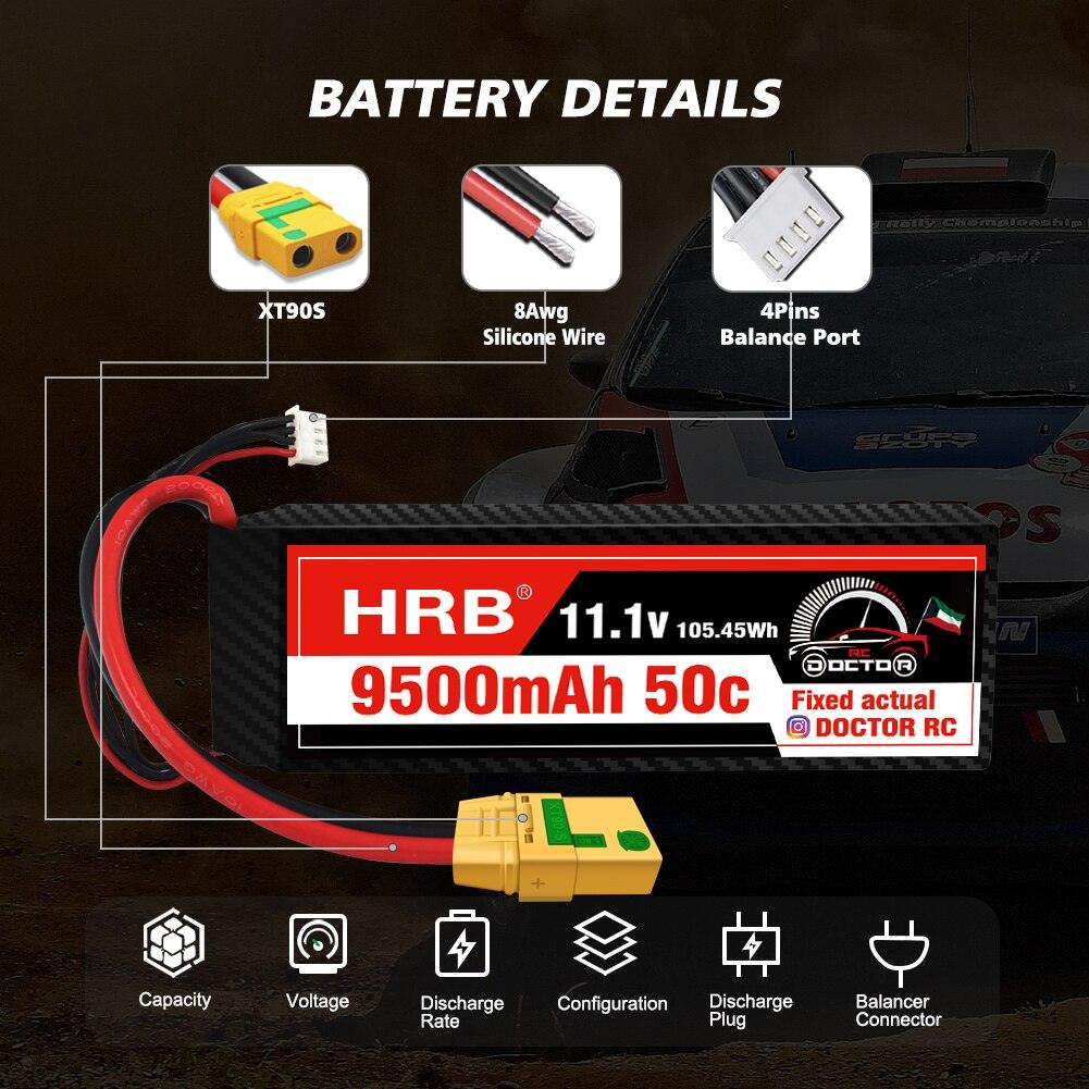 HRB 11.1V 9500mah 120C Hard Case LiPo Battery 3S Deans XT90 XT60 EC5 T Plug XT90