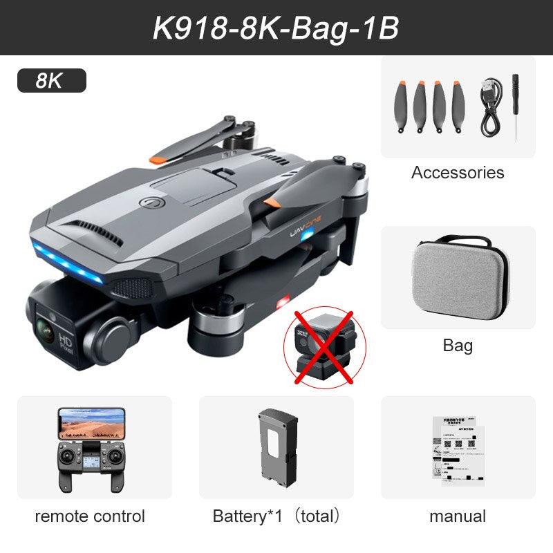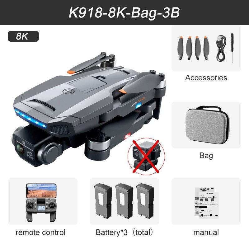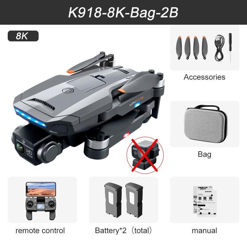 Obstacle Avoidance K918 Max features 4K HD dual cameras and 8K HD camera capabilities for professional-grade aerial photography and videography. It also includes common movie shooting modes such as 360-degree surround shooting.