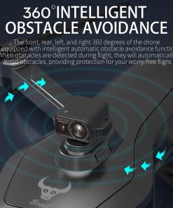 This drone features a 360-degree automatic obstacle avoidance system, equipped with three-axis ELS anti-shake technology for smooth video capture. The camera has a mechanical gimbal that allows for precise pointing during flight. It also boasts GPS positioning, auto-follow, lost connection recovery, low power return, and FPV (first-person view) capabilities. The drone comes with a 5G WiFi module, supporting a 50x zoom capability. Additionally, it features real-time camera transmission, optical flow smart modular design, brushless motors, and APP control for remote positioning and battery distance monitoring.