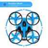 Equipped with advanced 2.4GHz remote control technology, this drone features an indicator light that ensures smooth operation, plus impressive flight capabilities including 360° flips and rolls, throttle control, directional joystick navigation, and fine-tuning adjustments for left and right headless mode operations.