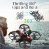 This palm-sized, compact drone features a versatile design with multiple functions, including infrared sensing and 2.46GHz remote control. It also has an altitude hold feature, durable prop guards, and can perform flips and rolls in all directions.