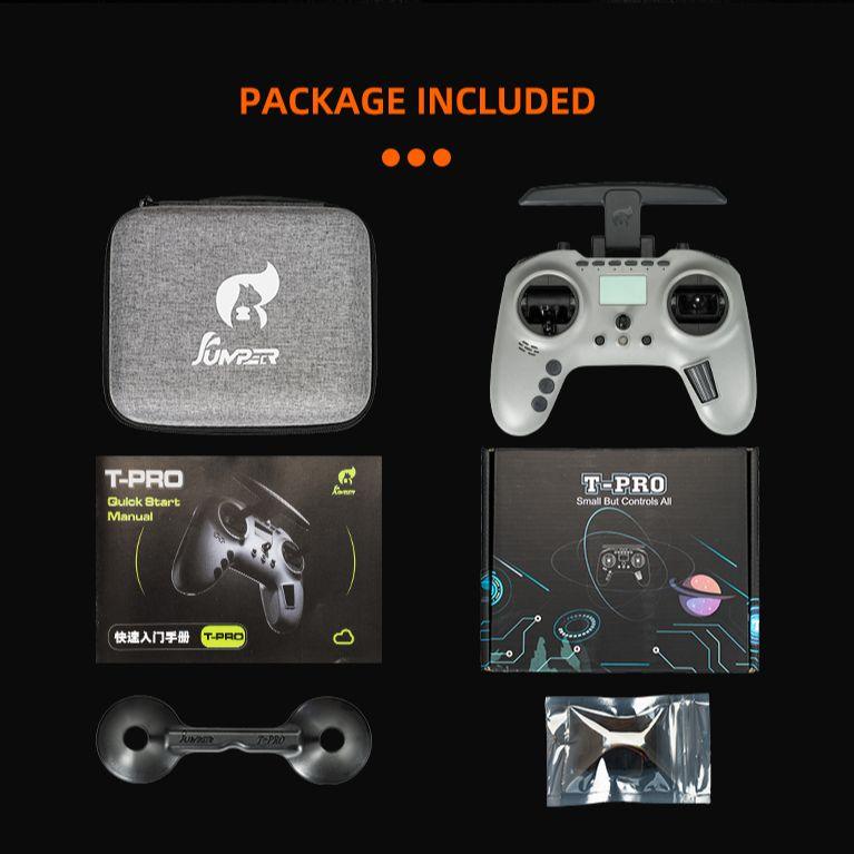 Jumper T-Pro Internal RF: JPAINI Multi-Protocol Module Working voltage: DC 6V-8.4V Compatible firmware: OpenTX EdgeTX Screen: 1.3″ LCD 128*64 resolution Gimbal: Hall sensor gimbals