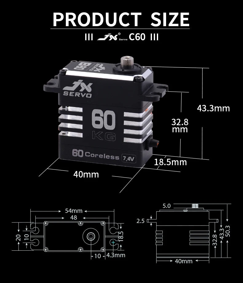 JX SERVO C60 7.4V 60KG Servo SPECIFICATIONS