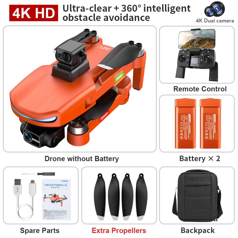 Equipped with a three-axis 4K HD gimbal, this drone features obstacle avoidance technology, electric folding body, GPS adjustable camera positioning, optical flow capture, surround shooting route mode planning, and return-to-home functionality.