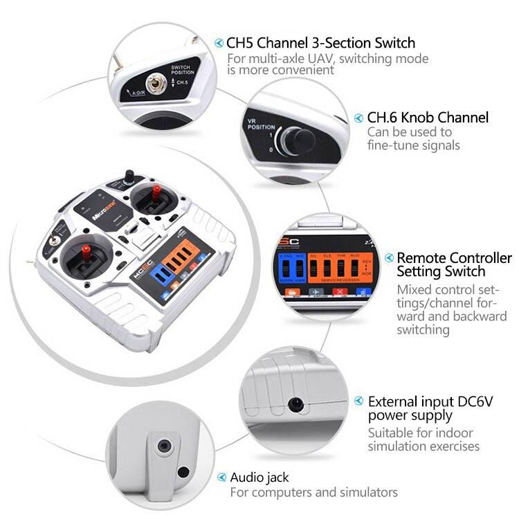 DIR Switch RF Indicator Channel 5 Reo Channel 6 Vln Throttle fine-tuning . Microzone Lift rudder fine tuning (left-hand throttle) Vontor Lift-rudder . fine tuning MC 2oHI Mixed control function switch .