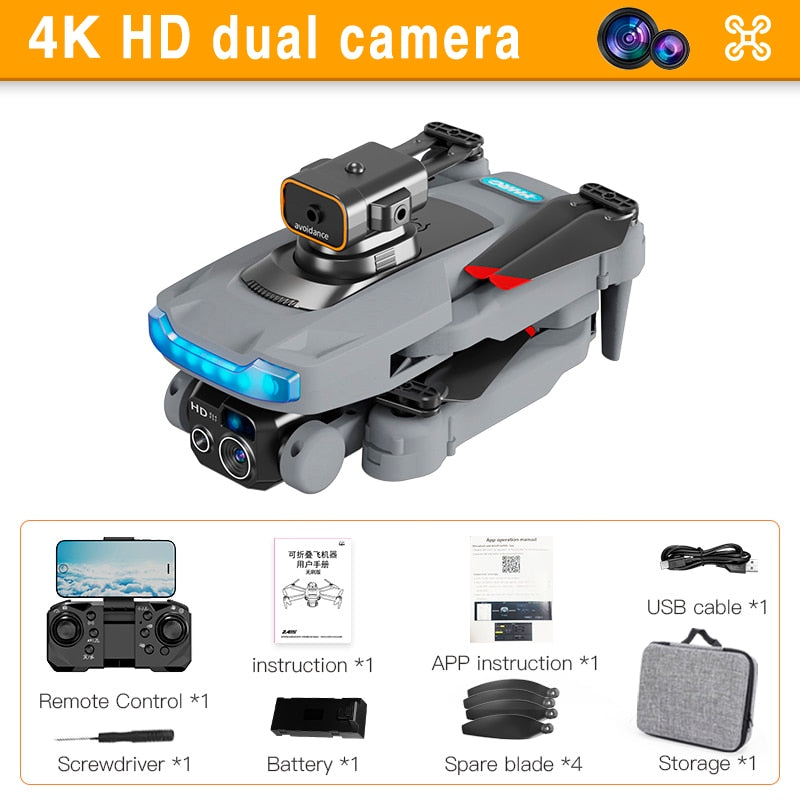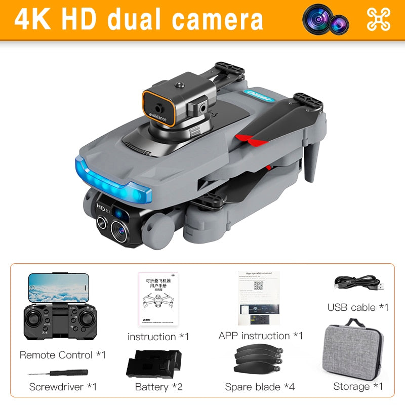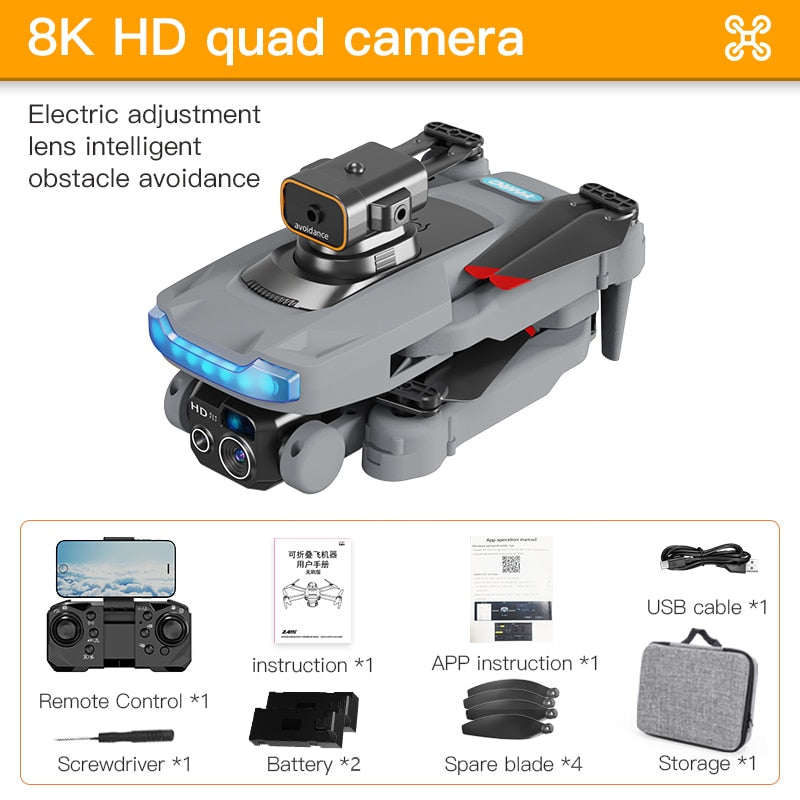 1. The front lens is placed with wide-angle 8K high-definition WIFI, and the optical flow high-definition lens at the bottom can switch the camera angle. The servo gimbal design increases stability, adding EIS electronic anti-shake, the picture lines are clearer.