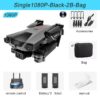 This drone features an infrared sensor for obstacle avoidance, allowing for one-click returns. It also offers real-time transmission, dual camera switching, and optical flow positioning for gesture photography. The camera can take about 25 minutes’ worth of photos in JPEG format or record video in MP4 format. The signal is transmitted via 2.46GHz/5G anti-jamming technology. Control the drone using a remote control that requires three L5V AAA batteries. A mobile phone bracket with downward deployment is also included.