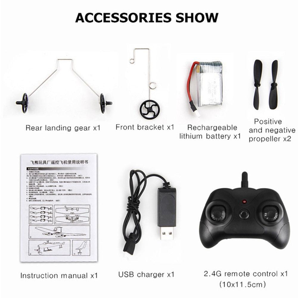 2.4GHz 2CH aircraft, including 4 directional flying, ascending, descending, turning left, and turning right.