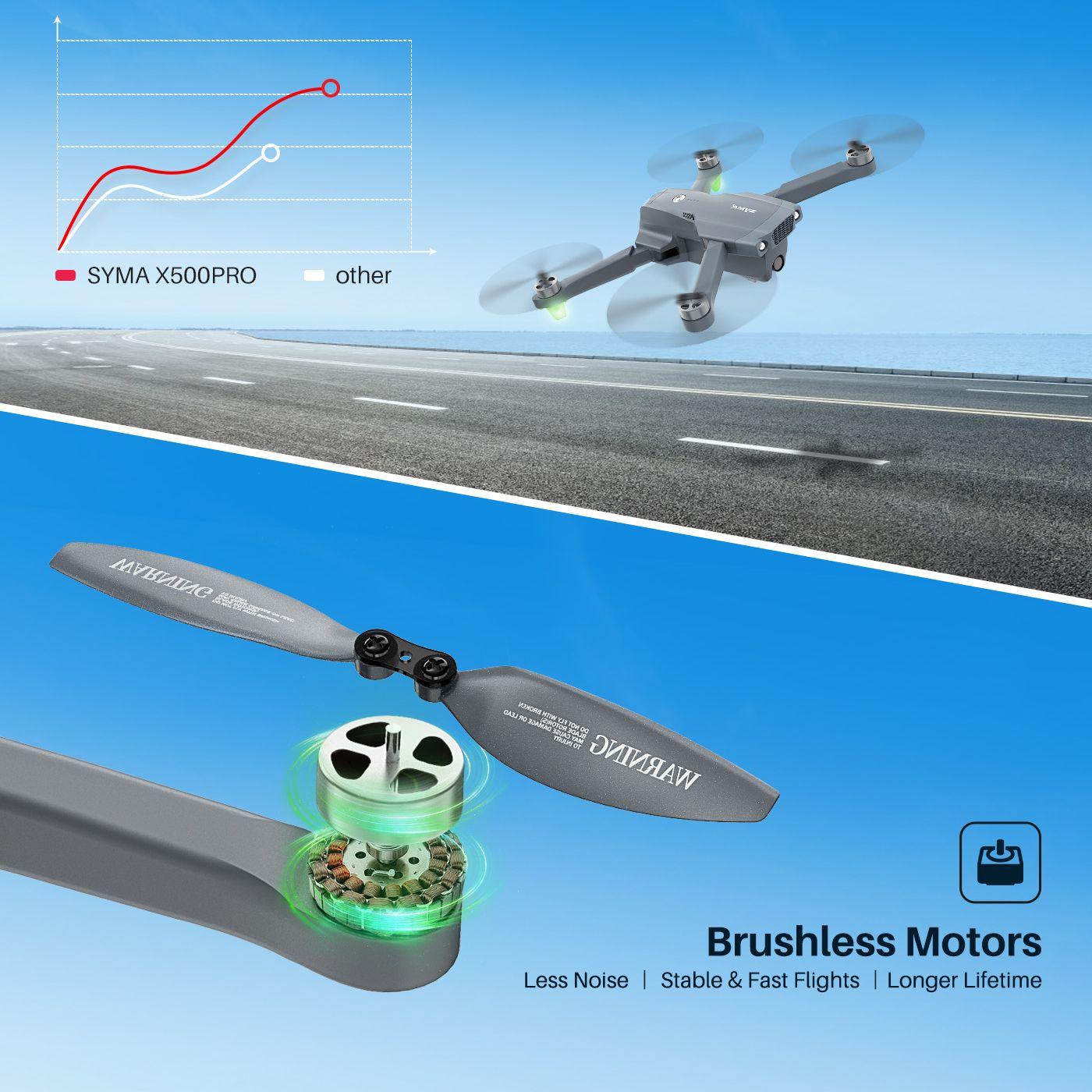Featuring intelligent battery technology for double flight time, the SYMA X500 Pro drone is equipped with brushless motors that provide quieter and faster flights. Additionally, it boasts a longer lifespan.