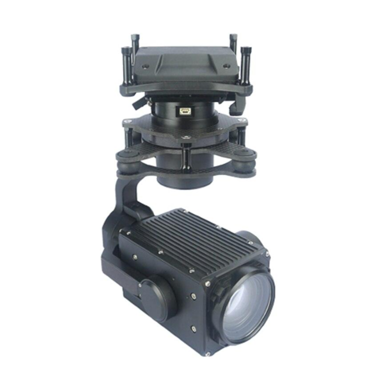 It is a three-axis zoom camera gimbal specially developed for industrial applications. It supports 30X optical zoom, 4X digital zoom, and 120X hybrid zoom, with a total pixel of 2.07 million, which can clearly present the scene from hundreds of meters away; support starlight-level night vision function, you can catch clear images even at low light nights. The pod adopts professional three-axis mechanical stabilization technology, and the image stabilization accuracy reaches ±0.01°. It supports connection with unmanned aerial vehicles through the quick release interface, and can be used in many industries such as fire protection, forest public security, public security monitoring, search and rescue, and environmental protection law enforcement.