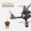 The TCMMRC Racing Bee features an 1104 motor with a maximum single thrust of 170g, maximum continuous current of 20A, and maximum continuous power of 144W. This includes the HuJore EAGHIINE 1104-8600KV Motor.